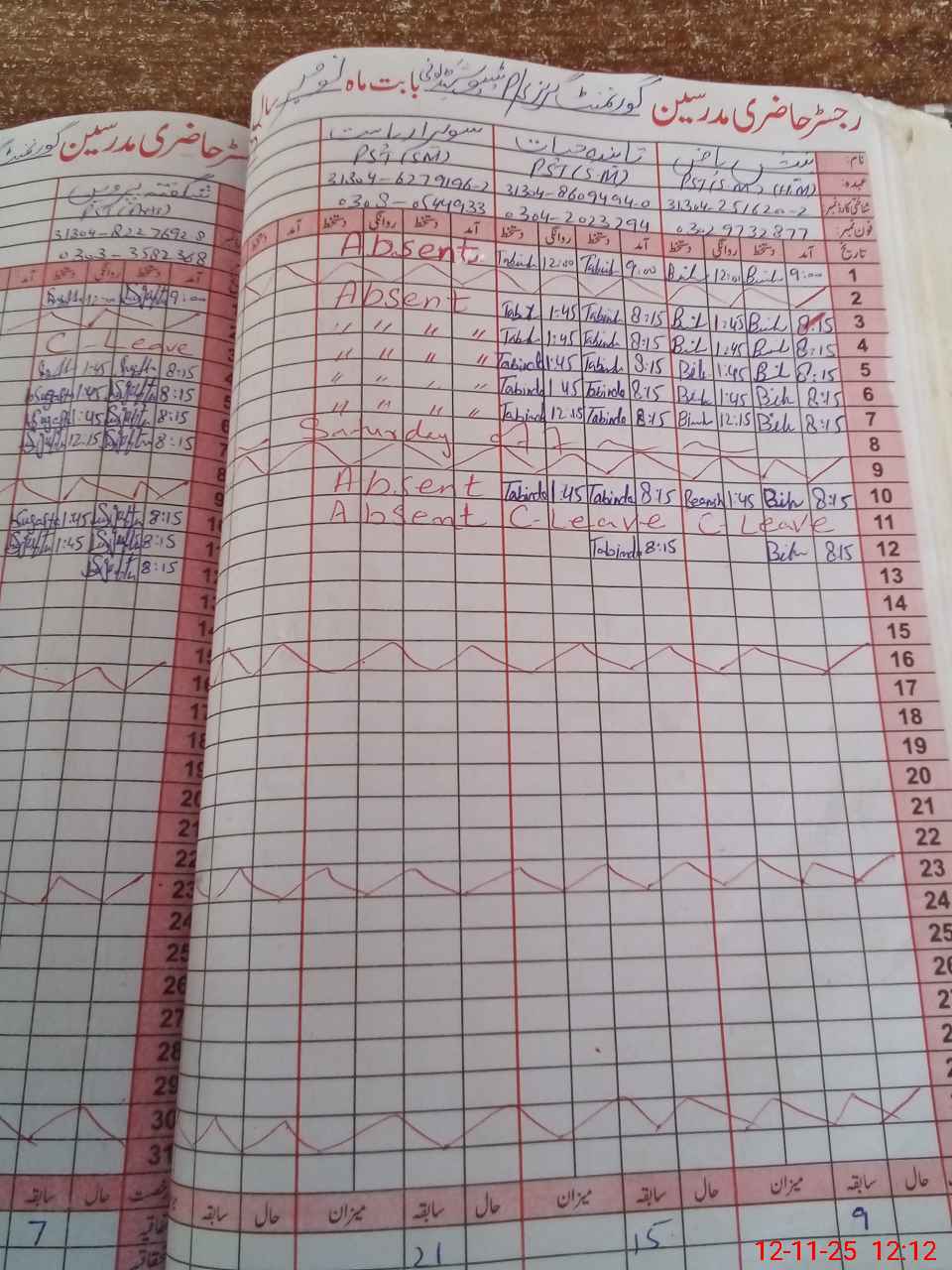 | CNIC | Full Name | Designation | R/C | Absence During Last Calender Month |