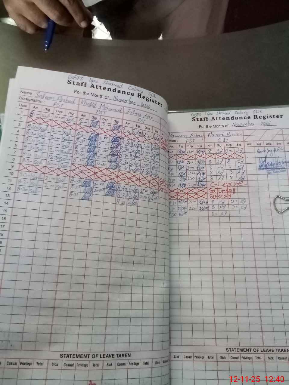 | Name: Sa**** Ar**** Designation: (School Headmaster's/Headmistress's) PST/PTC/JV Phone/Cell Number: 03**** |