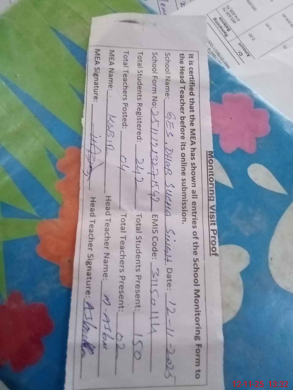 | Certified that this School was Inspected by the Undersigned MEA/DMO Today and the Information Stated Above is as Per Record. | |||||