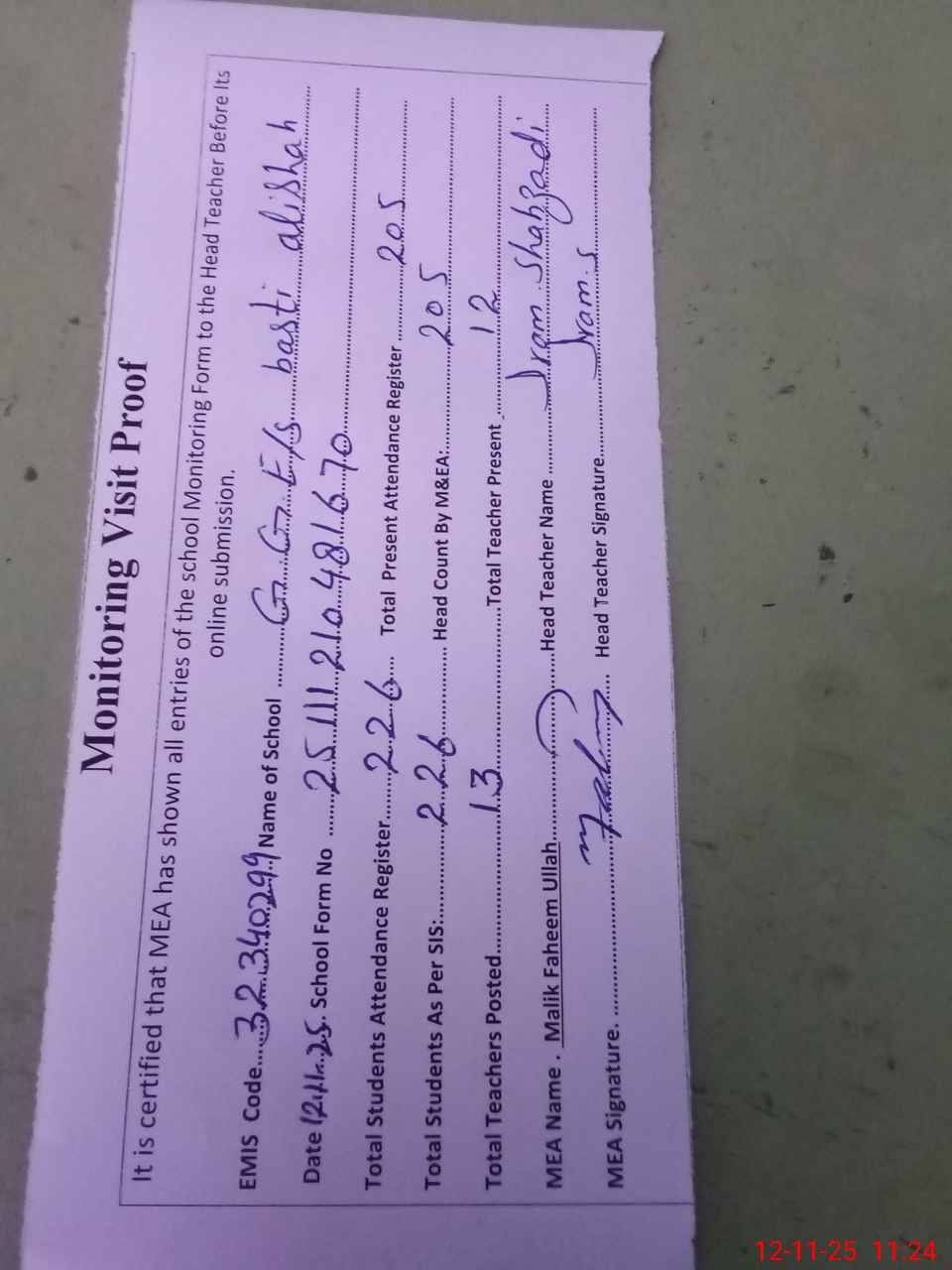| EMIS Code: 32340299 | Name of School: GGES ALI SHAH | |||