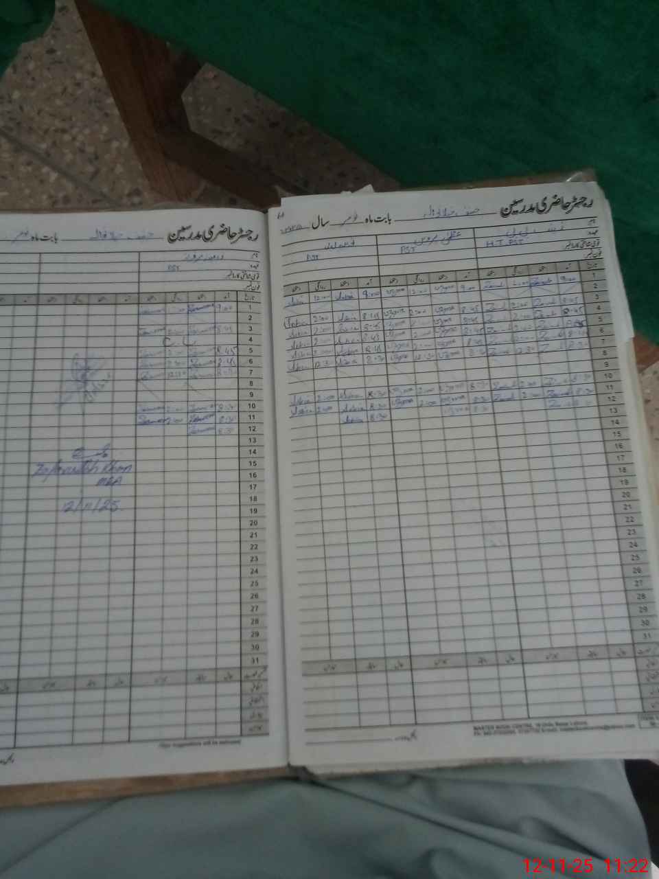 | CNIC | Full Name | Designation | R/C | Absence During Last Calender Month |