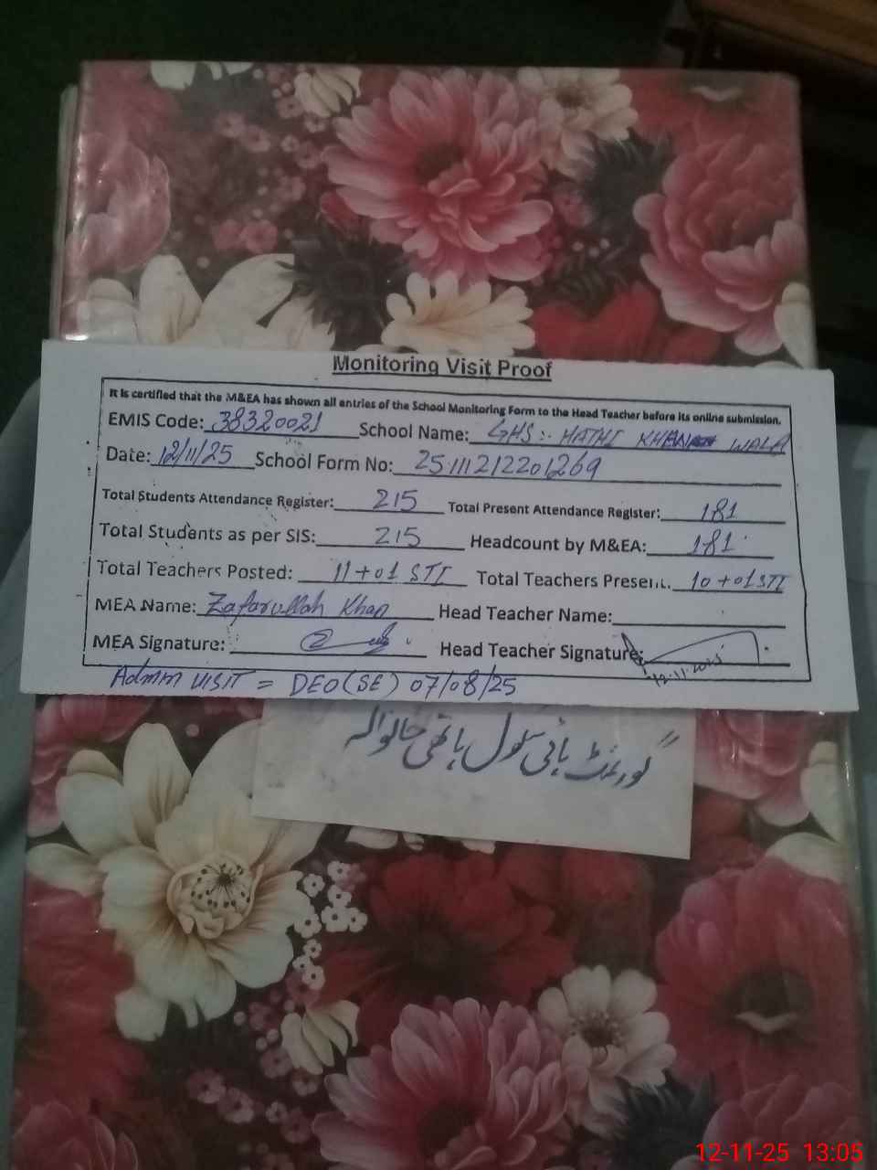 | EMIS Code: 38320021 | Name of School: GHS HATHI KHANWALA | |||