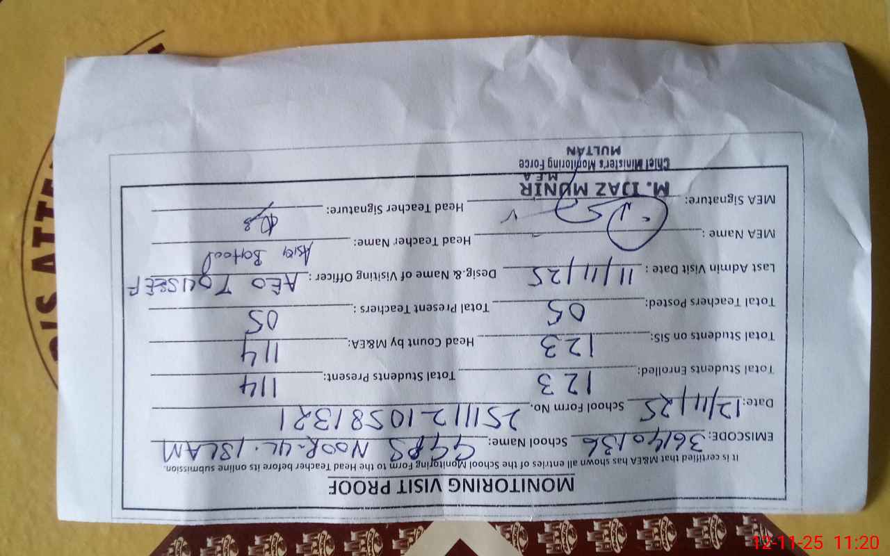 | EMIS Code: 36140136 | Name of School: GGPS NOOR-UL-ISLAM JALALPUR PIRWALA | |||