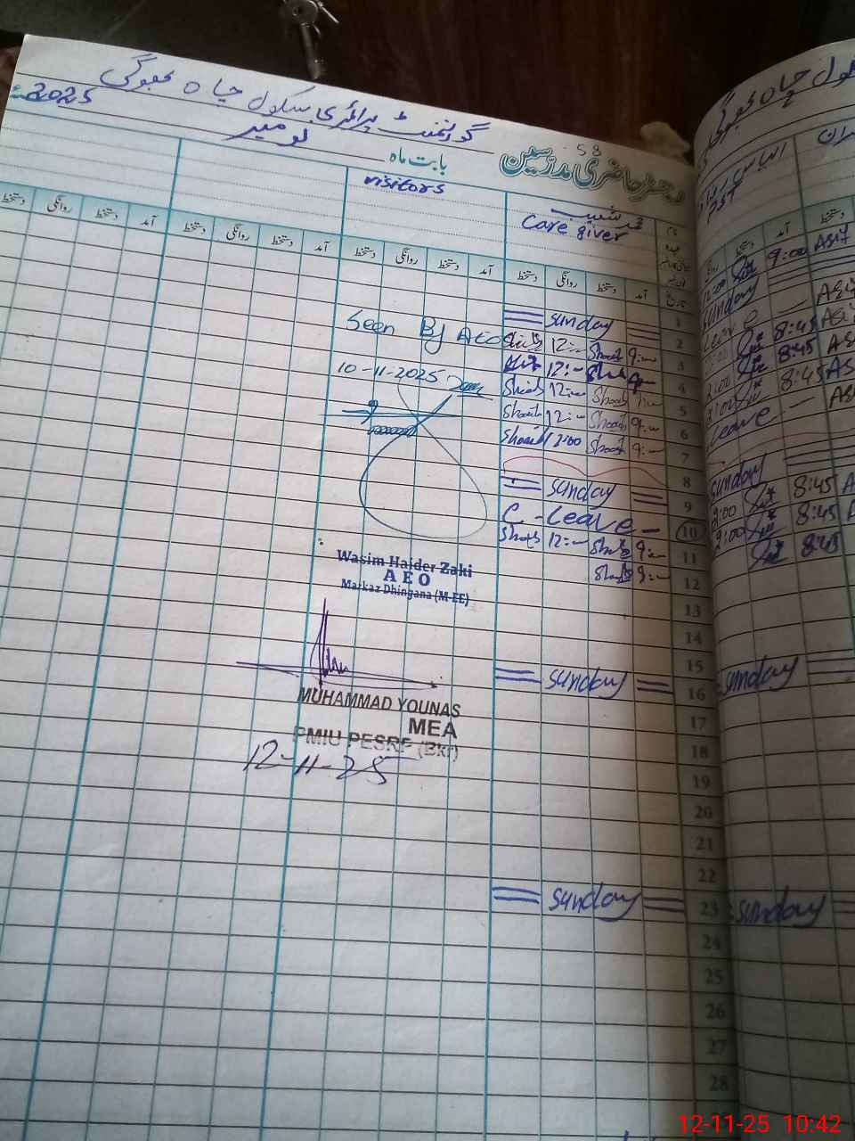 | Remarks (Use Separate Page if Required): Waseem Haider AEO 10 Nov 2025 | |||||