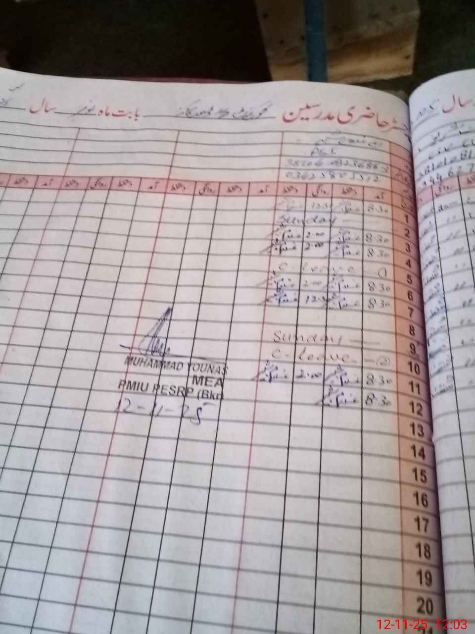 | CNIC | Full Name | Designation | R/C | Absence During Last Calender Month |
