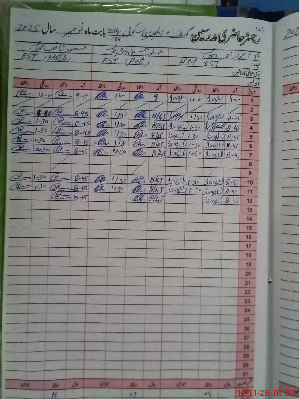 | Name: EJ**** AH**** Designation: (School Headmaster's/Headmistress's) S.S.T.(G) Phone/Cell Number: 03**** |