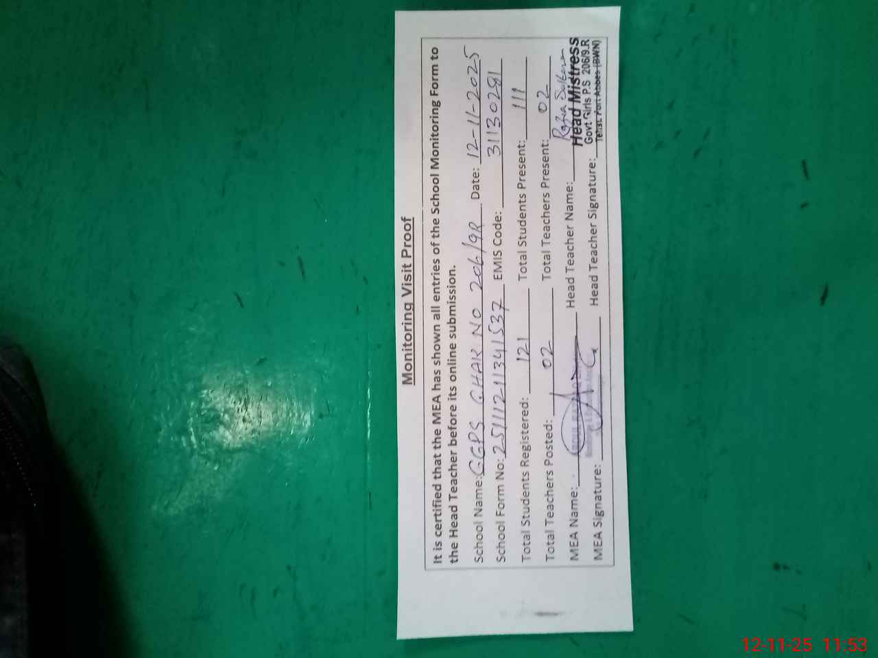 | EMIS Code: 31130281 | Name of School: GGPS CHAK NO 206/9-R | |||
