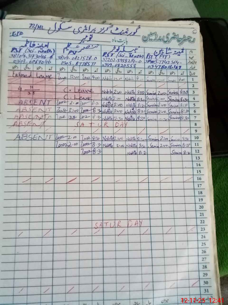 | CNIC | Full Name | Designation | R/C | Absence During Last Calender Month |