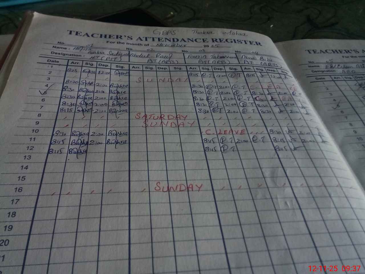 | Name: BU**** SA**** Designation: (School Headmaster's/Headmistress's) ESE SCI MATH Phone/Cell Number: 03**** |