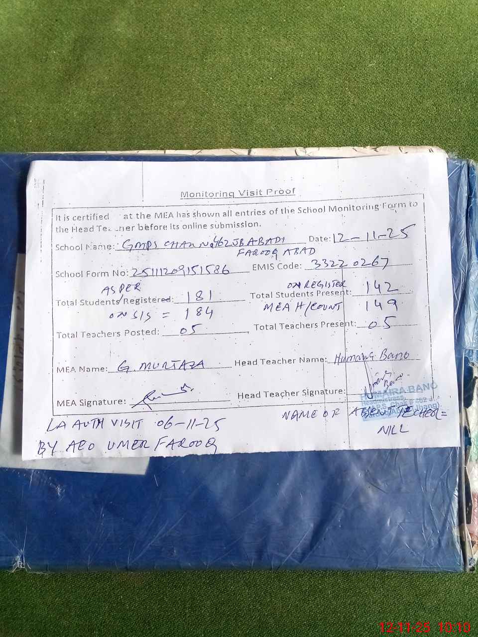 | EMIS Code: 33220267 | Name of School: GMPS CHAK NO. 462 JB ABADI FAROOQUE ABAD | |||