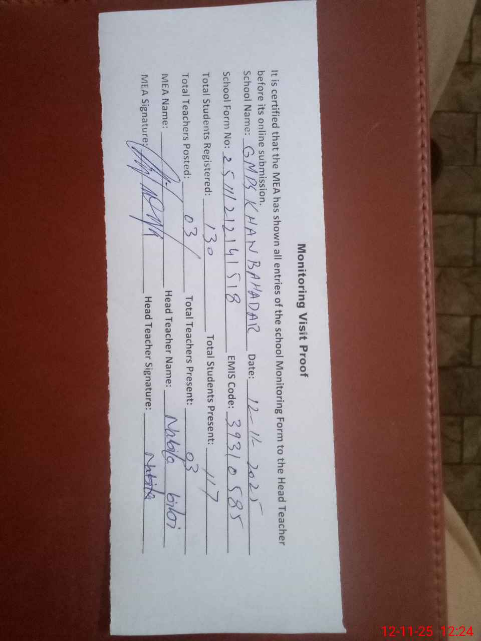 | EMIS Code: 39310585 | Name of School: GMPS KHAN BAHADAR | |||