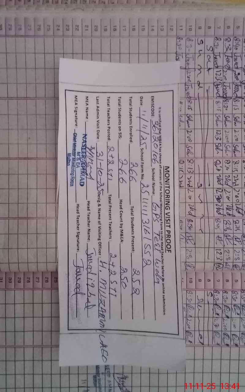 | Certified that this School was Inspected by the Undersigned MEA/DMO Today and the Information Stated Above is as Per Record. | |||||