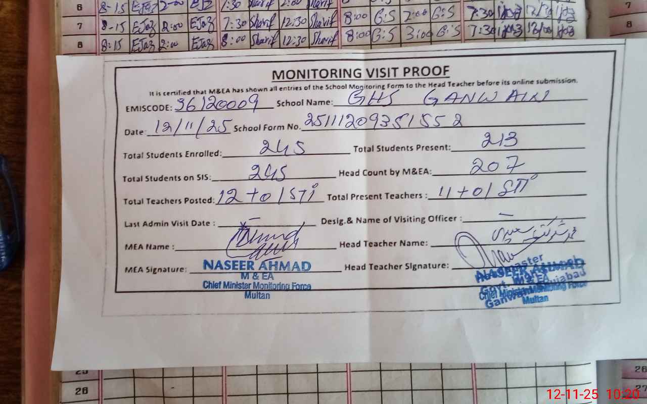 | EMIS Code: 36120009 | Name of School: GHS GAWAIN MOZA GANWEN TEH. SHUJABAD | |||