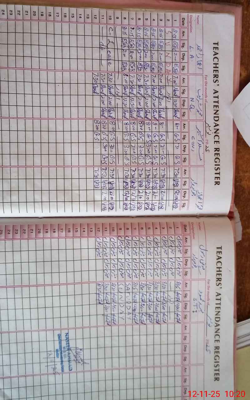 | CNIC | Full Name | Designation | R/C | Absence During Last Calender Month |