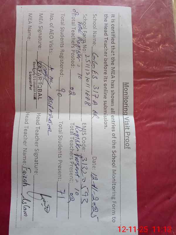 | EMIS Code: 31320593 | Name of School: GGES CHAK 317/A 6-R | |||
