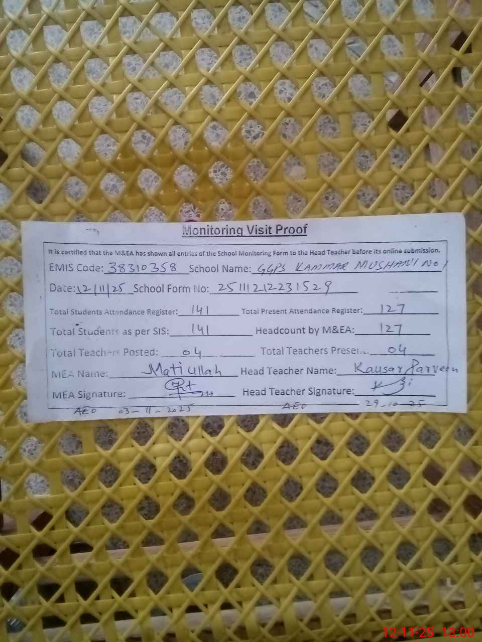 | EMIS Code: 38310358 | Name of School: GGPS KAMMAR MUSHANI NO.1 | |||