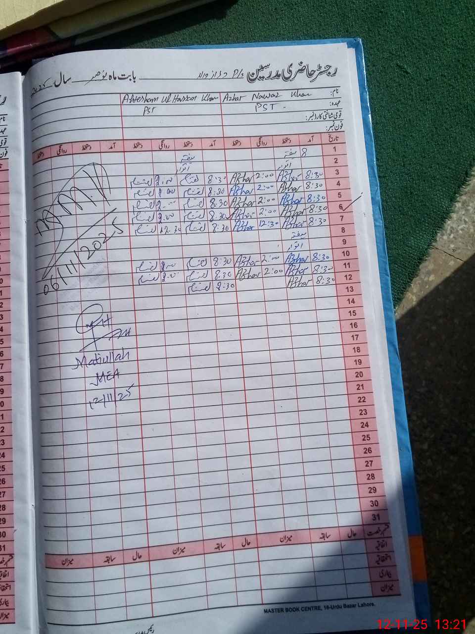 | Name: Az**** Na**** Kh**** Designation: (School Headmaster's/Headmistress's) PST Phone/Cell Number: 03**** |