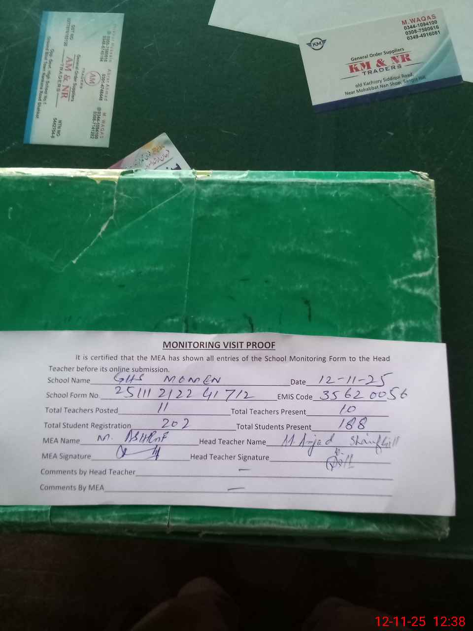 | Attendance Register | Head Teacher | MEA with School | Visit Proof |