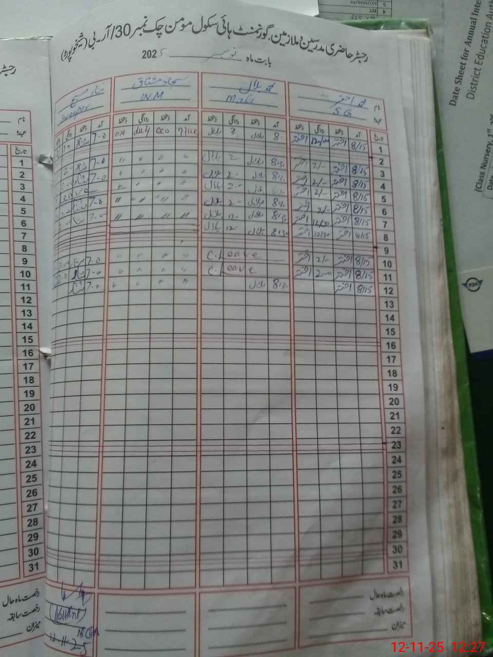 | CNIC | Full Name | Designation | R/C | Absence During Last Calender Month |