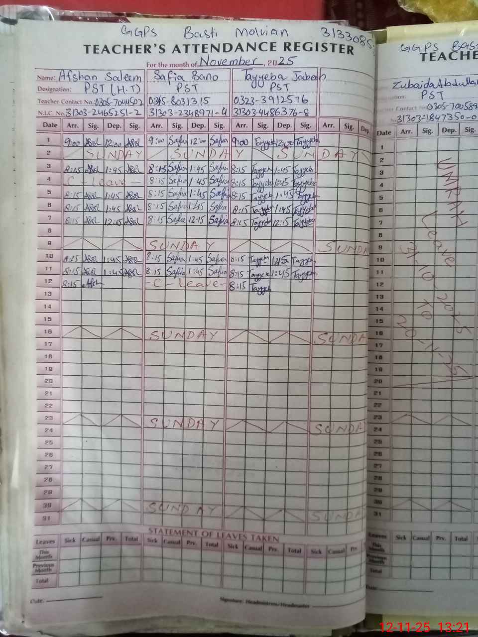 | Name: Af**** Sa**** Designation: (School Headmaster's/Headmistress's) PST Phone/Cell Number: 03**** |