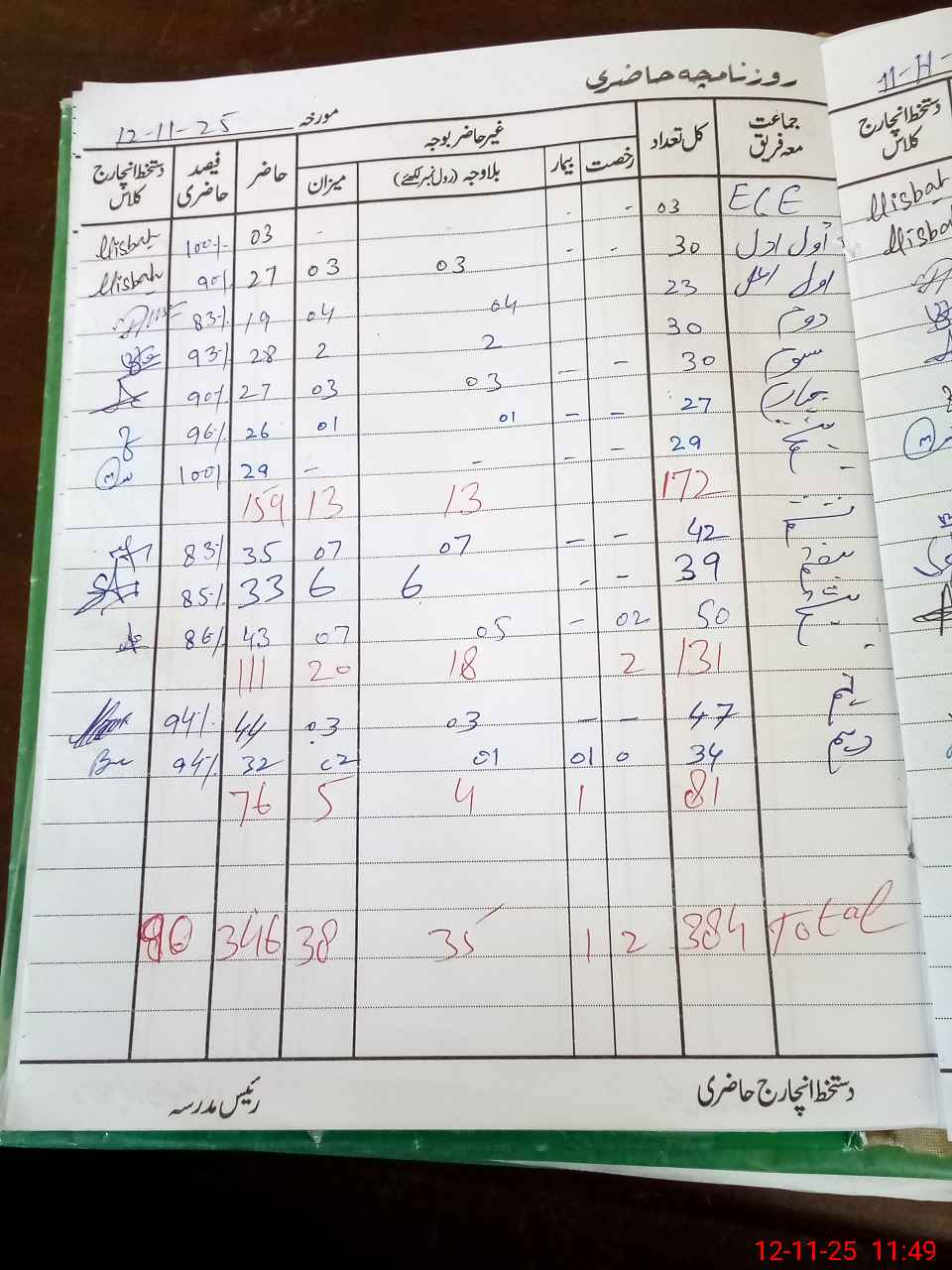 | ECE | Un-admt | K | 1 | 2 | 3 | 4 | 5 | 6 | 7 | 8 | 9 | 10 | Total | |||
