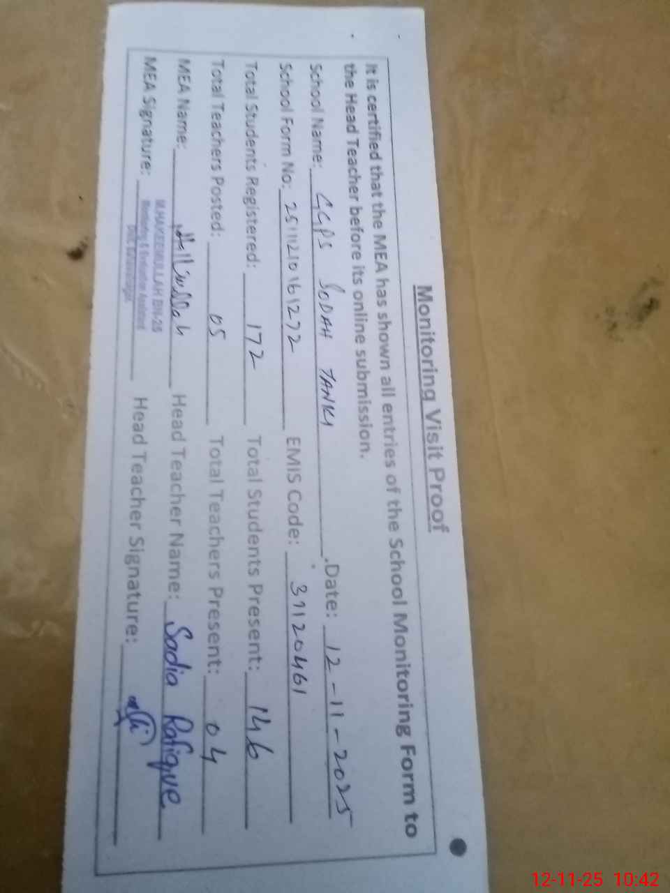 | EMIS Code: 31120461 | Name of School: GGPS SODAH TANKI | |||