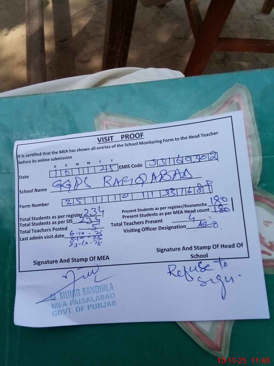 | EMIS Code: 33160302 | Name of School: GGPS CHAK RAFIQ ABAD MAMUN KANJAN | |||