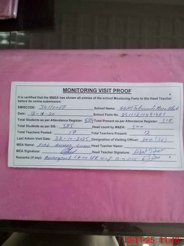 | EMIS Code: 34110068 | Name of School: GGHS TALWANDI MUSA KHAN | |||