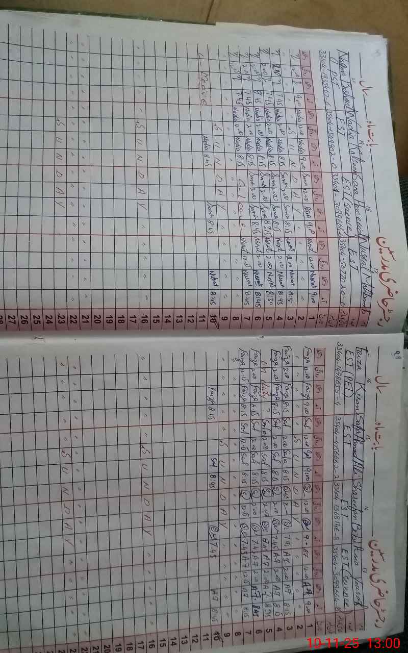 | CNIC | Full Name | Designation | R/C | Absence During Last Calender Month |