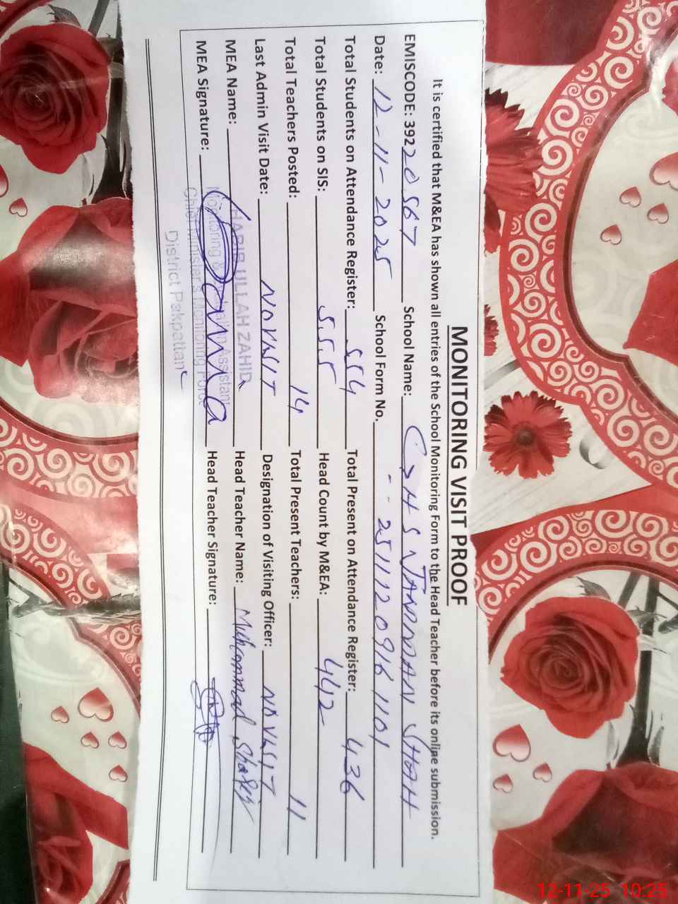 | EMIS Code: 39220567 | Name of School: GHS JUMAN SHAH | |||