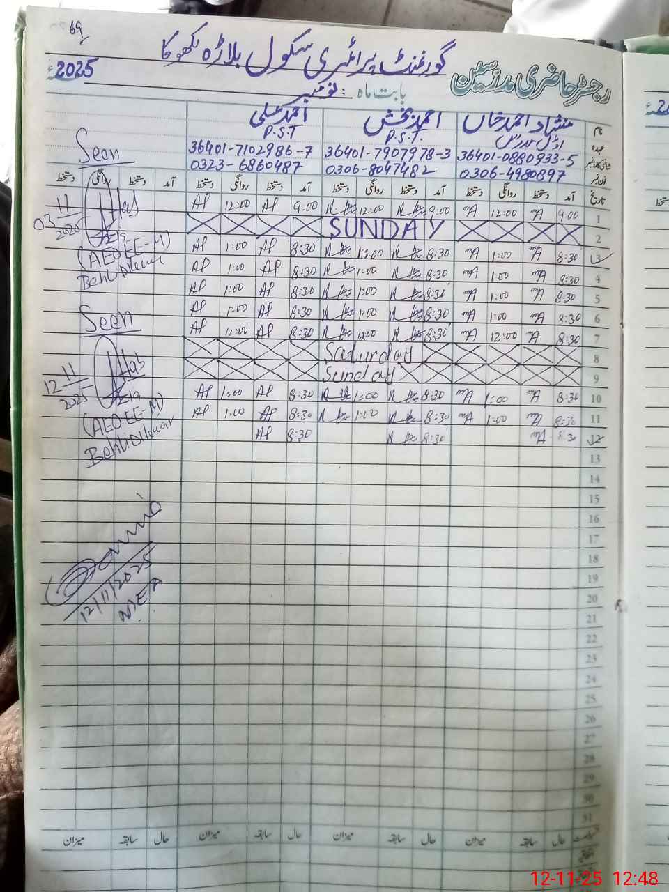 | Name: MA**** AH**** Designation: (School Headmaster's/Headmistress's) PST Phone/Cell Number: 03**** |