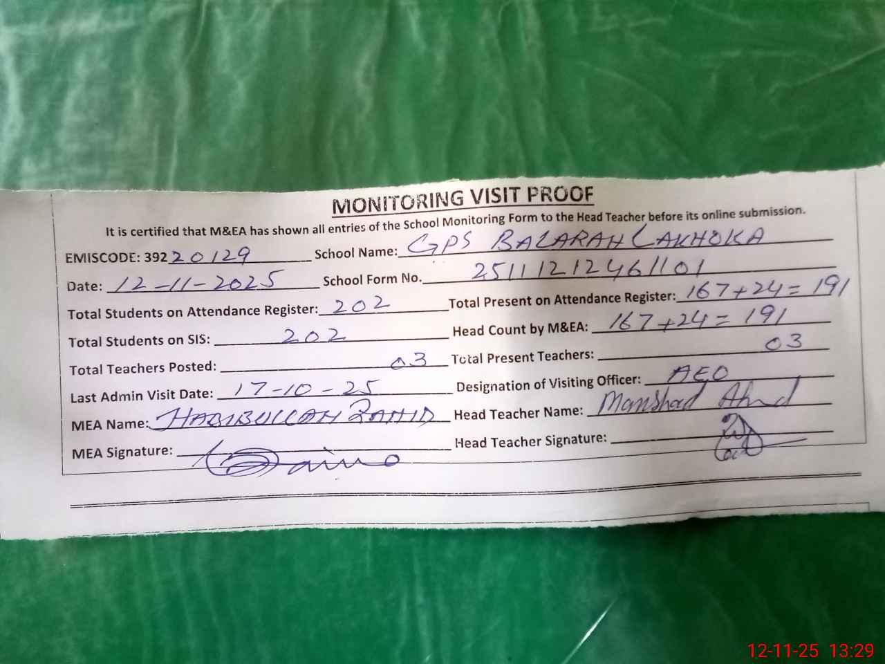 | EMIS Code: 39220129 | Name of School: GPS BALARA LAKHOKA | |||