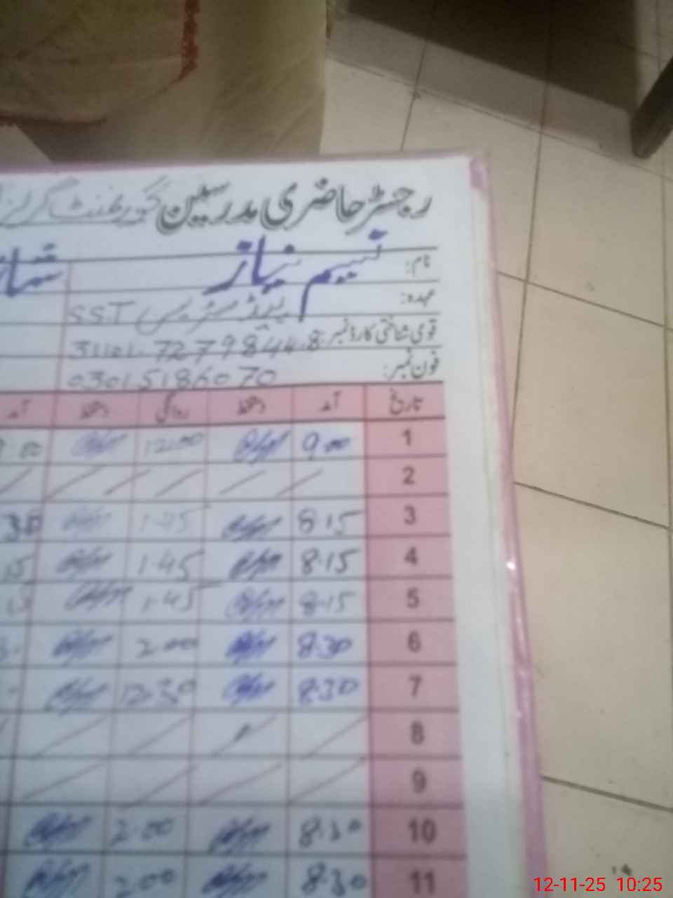 | Name: Na**** Ni**** Designation: (School Headmaster's/Headmistress's) SST Phone/Cell Number: 03**** |