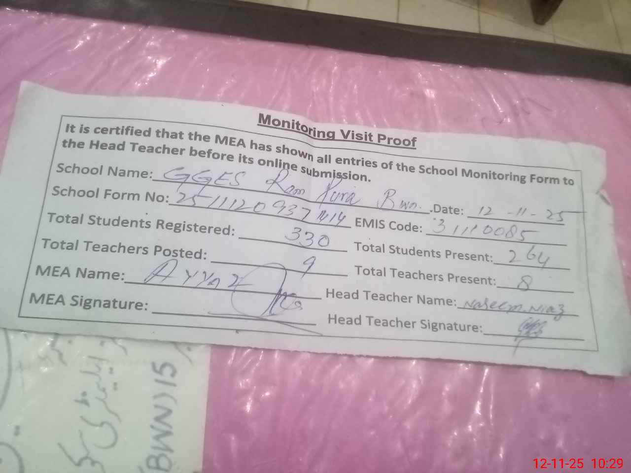 | EMIS Code: 31110085 | Name of School: GGES RAM PURA (BWN) | |||