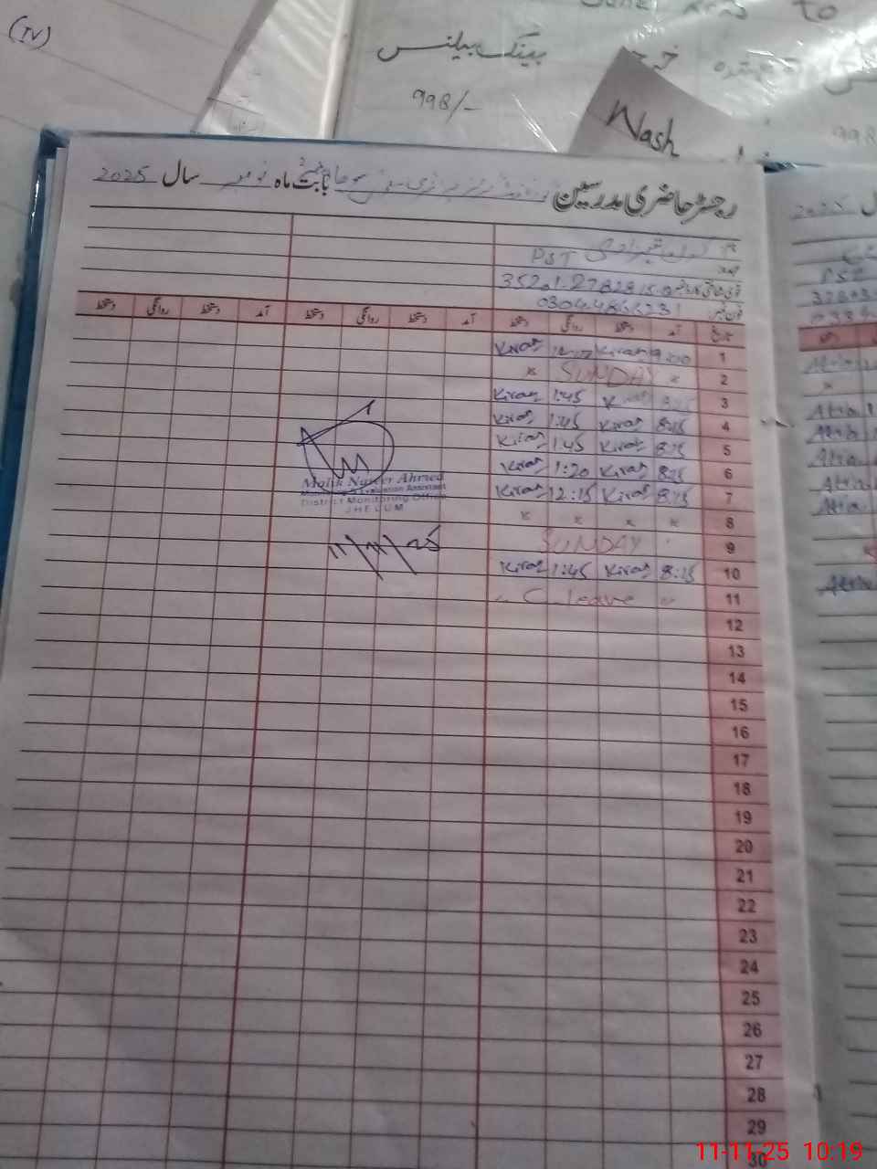 | Monitoring Date: 11-11-2025 | Start Time: 11-11-2025 09:47 AM | End Time: 11-11-2025 10:21 AM | Name of MEA: Na**** Ah**** | |