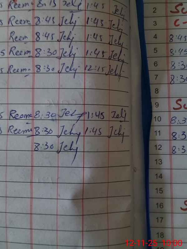 | CNIC | Full Name | Designation | R/C | Absence During Last Calender Month |