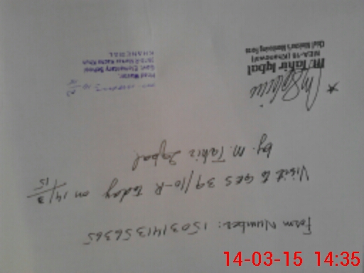 | Monitoring Date: 14-03-2015 | Start Time: 14-03-2015 01:56 PM | End Time: 14-03-2015 02:36 PM | Name of MEA: M.Ta**** Iq**** (S**** | |