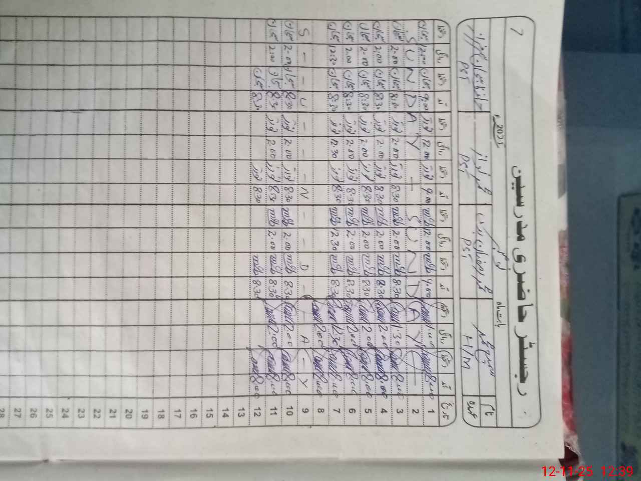 | CNIC | Full Name | Designation | R/C | Absence During Last Calender Month |