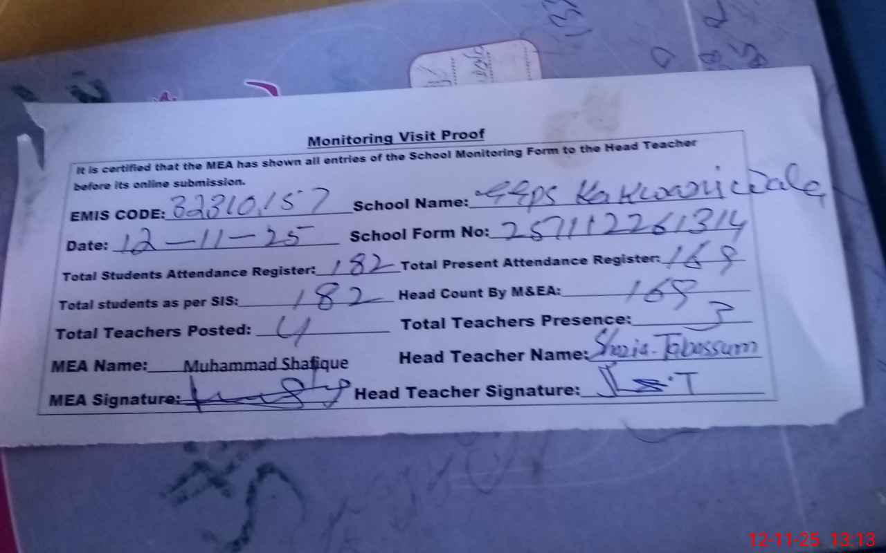 | EMIS Code: 32310157 | Name of School: GGPS KAKWANI WALA | |||