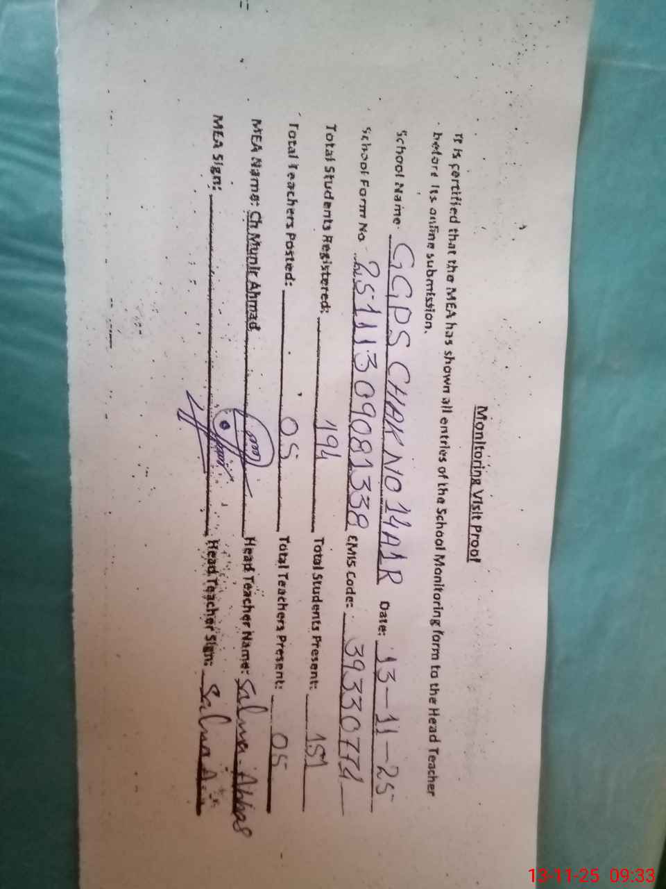 | Name: Sa**** Ab**** Designation: (School Headmaster's/Headmistress's) HEADMASTER Phone/Cell Number: 03**** |