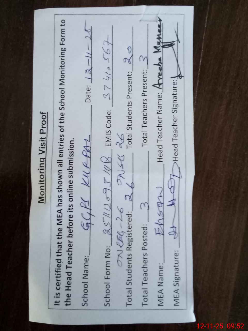 | EMIS Code: 37410567 | Name of School: GGPS KURPAL | |||