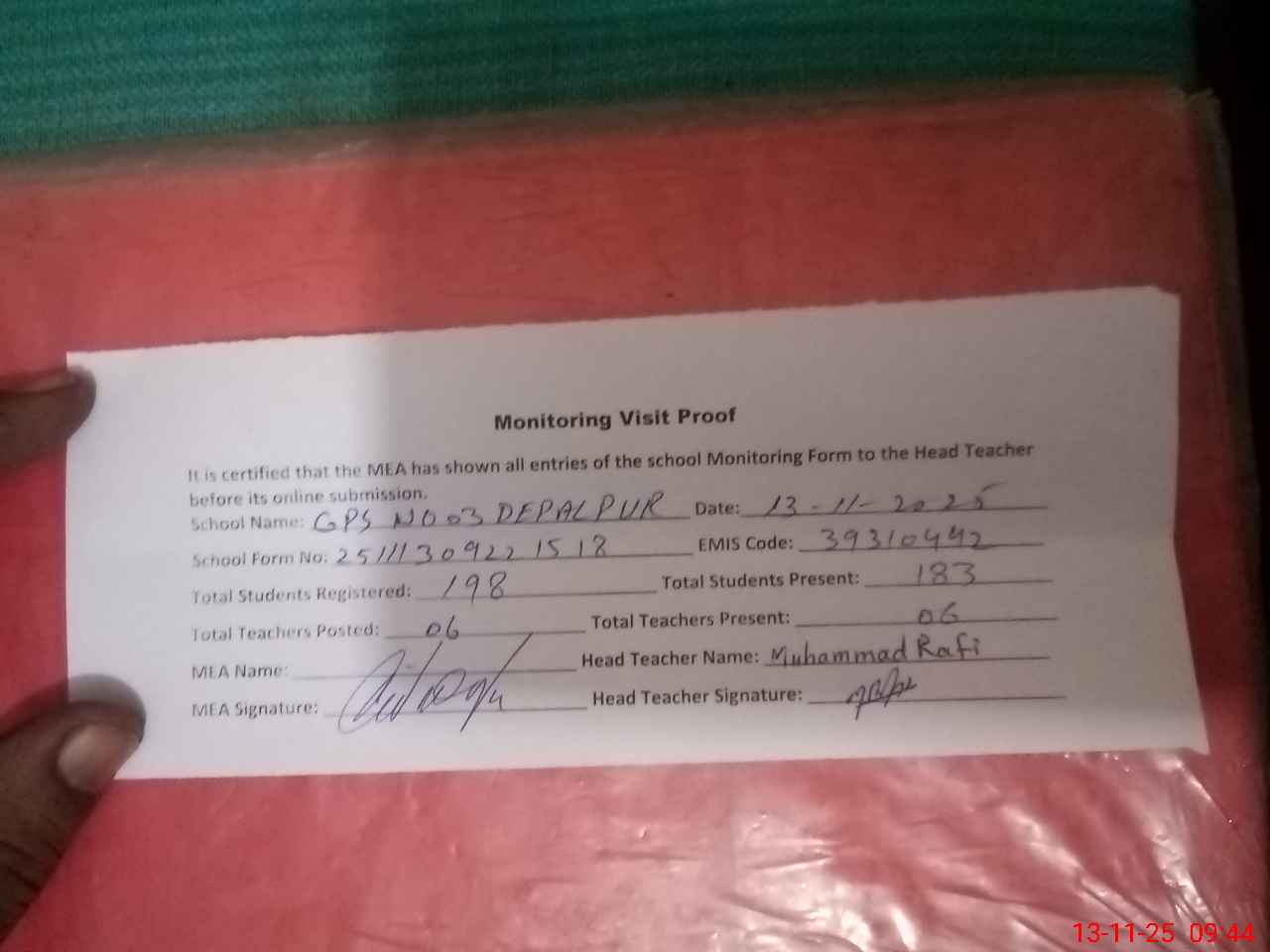 | EMIS Code: 39310442 | Name of School: GPS NO.3 DEPAL PUR | |||
