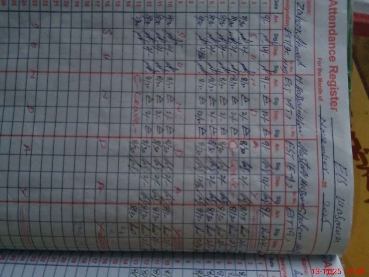 | CNIC | Full Name | Designation | R/C | Absence During Last Calender Month |