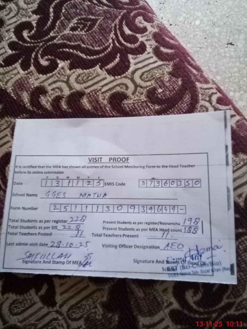 | Certified that this School was Inspected by the Undersigned MEA/DMO Today and the Information Stated Above is as Per Record. | |||||