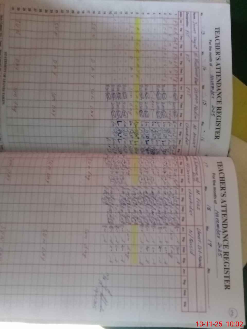 | CNIC | Full Name | Designation | R/C | Absence During Last Calender Month |