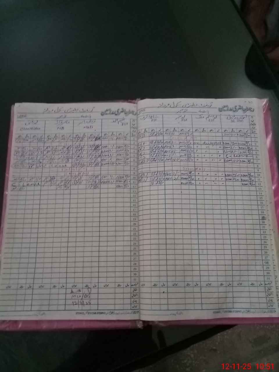 | CNIC | Full Name | Designation | R/C | Absence During Last Calender Month |