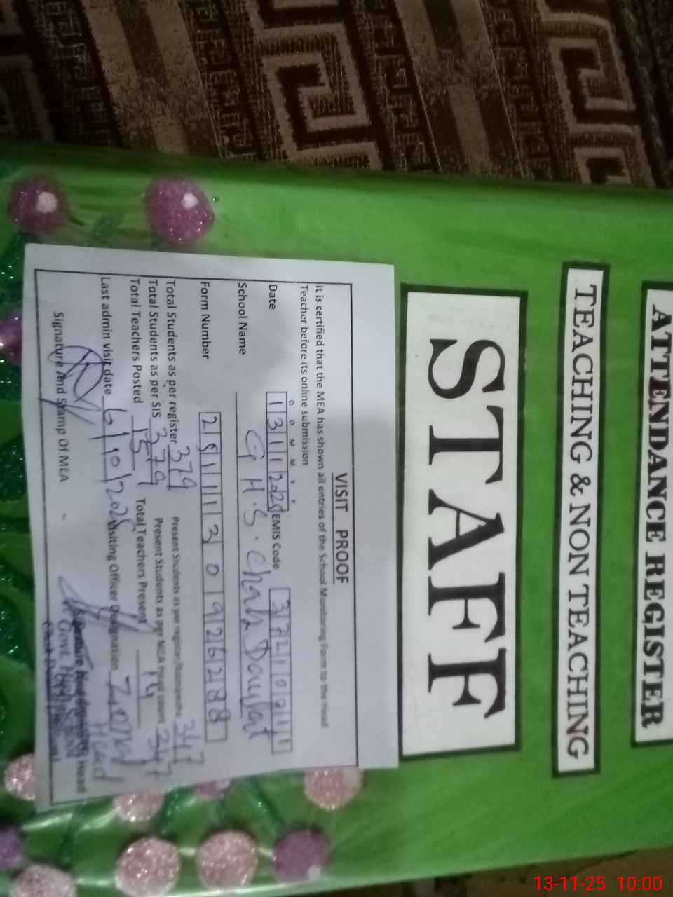 | EMIS Code: 37210011 | Name of School: GHS CHAK DAULAT | |||