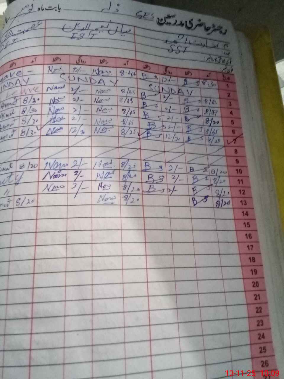 | CNIC | Full Name | Designation | R/C | Absence During Last Calender Month |