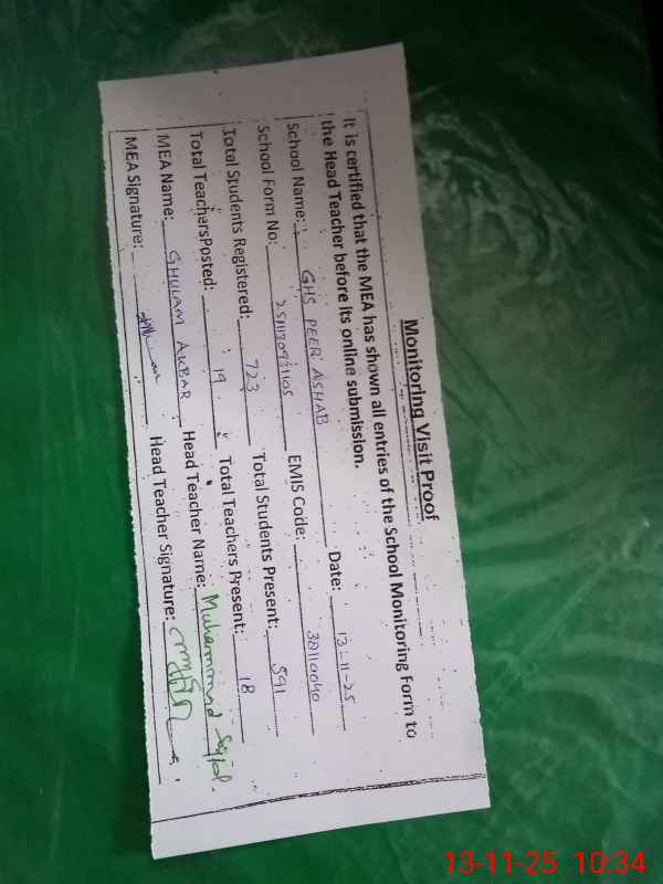 | EMIS Code: 38110040 | Name of School: GHS PIR ASHAB | |||