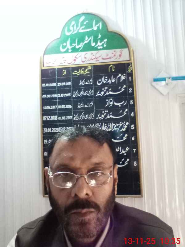 | Name: Mu**** Sa**** Designation: (School Headmaster's/Headmistress's) Sr Headmaster Phone/Cell Number: 03**** |